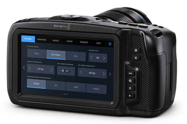 • Blackmagic OS: gives you incredible control of advanced camera features including 3D LUTs for both recording and monitoring, HDR output via HDMI, metadata entry, custom presets, extended video format, Bluetooth remote control, external timecode from the audio input, RAW recording and more